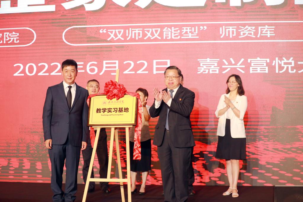 6月22日上午,嘉兴南湖学院与浙江鼎美智装股份有限公司战略合作签约仪式在嘉兴富悦大酒店举行。嘉兴市人大常委会主任高玲慧,嘉兴市政协副主席、校党委书记盛付祥,副校长袁志明,秀洲区人大常委会主任王永法及秀洲区王店镇相关领导出席。盛付祥与浙江鼎美智装股份有限公司董事长张轲共同为嘉兴南湖学院教学实习基地揭牌。袁志明与张轲代表合作双方签约。